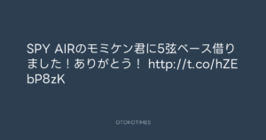 寺岡呼人 @yohito_teraoka – 14:22・2012年9月3日 2012 9/03 寺岡呼人 2012-09-03 SPY AIRのモミケン君に5弦ベース借りました!ありがとう! http://t.co/hZEbP8zK Source:https://x.com/yohito_teraoka/status/24249280085... text X Post 寺岡呼人 寺岡呼人 この記事が気に入ったら フォローしてね! Follow @OtokoTimes1988 よかったらシェアしてね! URLをコピーしました! 青山英樹 @aoyama_hideki - 10:51・2012年9月3日 寺岡呼人 @yohito_teraoka - 14:52・2012年9月3日 関連記事 Artist 寺岡呼人 1968.02.07