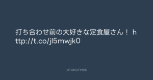 寺岡呼人 @yohito_teraoka – 12:36・2012年9月18日 2012 9/18 寺岡呼人 2012-09-18 打ち合わせ前の大好きな定食屋さん! http://t.co/jl5mwjk0 Source:https://x.com/yohito_teraoka/status/24790199413... text X Post 寺岡呼人 寺岡呼人 この記事が気に入ったら フォローしてね! Follow @OtokoTimes1988 よかったらシェアしてね! URLをコピーしました! 寺岡 呼人 @yohitoteraoka - 12:33・2012年9月18日(IG post) 青山英樹 @aoyama_hideki - 13:37・2012年9月18日 関連記事 Artist 寺岡呼人 1968.02.07