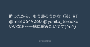 酔ったから、もう帰ろうかな(笑)RT @mie10649260 @yohito_teraoka いいなぁ~一緒に飲みたいです(^o^)
