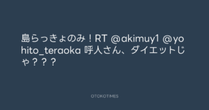 寺岡呼人 @yohito_teraoka – 23:37・2012年10月3日 2012 10/03 寺岡呼人 2012-10-03 島らっきょのみ!RT @akimuy1 @yohito_teraoka 呼人さん、ダイエットじゃ??? Source:https://x.com/yohito_teraoka/status/25350408920... text X Post 寺岡呼人 寺岡呼人 この記事が気に入ったら フォローしてね! Follow @OtokoTimes1988 よかったらシェアしてね! URLをコピーしました! 寺岡呼人 @yohito_teraoka - 23:35・2012年10月3日 寺岡呼人 @yohito_teraoka - 0:52・2012年10月4日 関連記事 Artist 寺岡呼人 1968.02.07