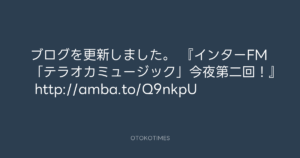 寺岡呼人 @yohito_teraoka – 10:04・2012年10月9日 2012 10/09 寺岡呼人 2012-10-09 ブログを更新しました。 『インターFM「テラオカミュージック」今夜第二回!』 http://amba.to/Q9nkpU Source:https://x.com/yohito_teraoka/status/25547377726... text X Post 寺岡呼人 寺岡呼人 この記事が気に入ったら フォローしてね! Follow @OtokoTimes1988 よかったらシェアしてね! URLをコピーしました! 寺岡呼人 @yohito_teraoka - 1:07・2012年10月9日 寺岡呼人 @yohito_teraoka - 10:08・2012年10月9日 関連記事 Artist 寺岡呼人 1968.02.07