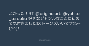 寺岡呼人 @yohito_teraoka – 21:52・2012年10月9日 2012 10/09 寺岡呼人 2012-10-09 よかった!RT @originalort: @yohito_teraoka 好きなジャンルなことに初めて気付きました♪ストーンズいいですね~(^^)/ Source:https://x.com/yohito_teraoka/status/25565204345... text X Post 寺岡呼人 寺岡呼人 この記事が気に入ったら フォローしてね! Follow @OtokoTimes1988 よかったらシェアしてね! URLをコピーしました! 寺岡呼人 @yohito_teraoka - 21:38・2012年10月9日 寺岡呼人 @yohito_teraoka - 22:18・2012年10月9日 関連記事 Artist 寺岡呼人 1968.02.07