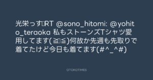 寺岡呼人 @yohito_teraoka – 22:35・2012年10月9日 2012 10/09 寺岡呼人 2012-10-09 光栄っす♫RT @sono_hitomi: @yohito_teraoka 私もストーンズTシャツ愛用してます(≧▽≦)何故か先週も先取りで着てたけど今日も着てます(#^_^#) Source:https://x.com/yohito_teraoka/status/25566289754... text X Post 寺岡呼人 寺岡呼人 この記事が気に入ったら フォローしてね! Follow @OtokoTimes1988 よかったらシェアしてね! URLをコピーしました! 寺岡呼人 @yohito_teraoka - 22:35・2012年10月9日 寺岡 呼人 @yohitoteraoka - 12:24・2012年10月10日(IG post) 関連記事 Artist 寺岡呼人 1968.02.07