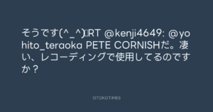 そうです(^_^)☆RT @kenji4649: @yohito_teraoka PETE CORNISHだ。凄い、レコーディングで使用してるのですか?