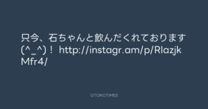 寺岡呼人 @yohito_teraoka – 1:29・2012年10月24日 2012 10/24 寺岡呼人 2012-10-24 只今、石ちゃんと飲んだくれております(^_^)! http://instagr.am/p/RIazjkMfr4/ Source:https://x.com/yohito_teraoka/status/26077996729... text X Post 寺岡呼人 寺岡呼人 この記事が気に入ったら フォローしてね! Follow @OtokoTimes1988 よかったらシェアしてね! URLをコピーしました! 寺岡 呼人 @yohitoteraoka - 01:28・2012年10月24日(IG post) 寺岡 呼人 @yohitoteraoka - 11:15・2012年10月24日(IG post) 関連記事 Artist 寺岡呼人 1968.02.07