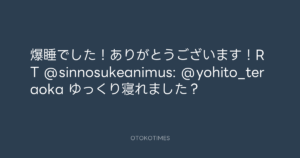 寺岡呼人 @yohito_teraoka – 20:32・2012年11月8日 2012 11/08 寺岡呼人 2012-11-08 爆睡でした!ありがとうございます!RT @sinnosukeanimus: @yohito_teraoka ゆっくり寝れました? Source:https://x.com/yohito_teraoka/status/26650353269... text X Post 寺岡呼人 寺岡呼人 この記事が気に入ったら フォローしてね! Follow @OtokoTimes1988 よかったらシェアしてね! URLをコピーしました! 寺岡呼人 @yohito_teraoka - 19:17・2012年11月8日 寺岡 呼人 @yohitoteraoka - 09:49・2012年11月9日(IG post) 関連記事 Artist 寺岡呼人 1968.02.07