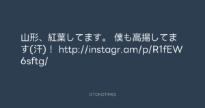 寺岡呼人 @yohito_teraoka – 13:33・2012年11月10日 2012 11/10 寺岡呼人 2012-11-10 山形、紅葉してます。 僕も高揚してます(汗)! http://instagr.am/p/R1fEW6sftg/ Source:https://x.com/yohito_teraoka/status/26712267990... text X Post 寺岡呼人 寺岡呼人 この記事が気に入ったら フォローしてね! Follow @OtokoTimes1988 よかったらシェアしてね! URLをコピーしました! 寺岡 呼人 @yohitoteraoka - 13:31・2012年11月10日(IG post) 寺岡 呼人 @yohitoteraoka - 13:34・2012年11月10日(IG post) 関連記事 Artist 寺岡呼人 1968.02.07