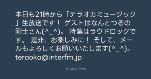 本日も21時から「テラオカミュージック」生放送です!