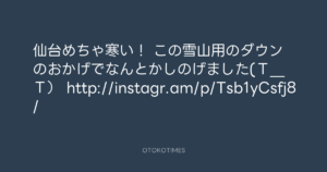 寺岡呼人 @yohito_teraoka – 18:15・2012年12月26日 2012 12/26 寺岡呼人 2012-12-26 仙台めちゃ寒い! この雪山用のダウンのおかげでなんとかしのげました(T_T) http://instagr.am/p/Tsb1yCsfj8/ Source:https://x.com/yohito_teraoka/status/28386356919... text X Post 寺岡呼人 寺岡呼人 この記事が気に入ったら フォローしてね! Follow @OtokoTimes1988 よかったらシェアしてね! URLをコピーしました! Koyo Maeda @koyomaeda - 18:13・2012年12月26日 寺岡 呼人 @yohitoteraoka - 12:44・2012年12月27日(IG post) 関連記事 Artist 寺岡呼人 1968.02.07