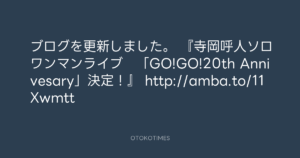 ブログを更新しました。 『寺岡呼人ソロワンマンライブ 「GO!GO!20th Annivesary」決定!』 http://amba.to/11Xwmtt
