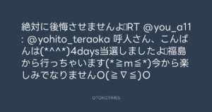 寺岡呼人 @yohito_teraoka – 23:28・2013年2月27日 2013 2/27 寺岡呼人 2013-02-27 絶対に後悔させませんよ☆RT @you_a11: @yohito_teraoka 呼人さん、こんばんは(*^^*)4days当選しましたよ♪福島から行っちゃいます(*≧m≦*)今から楽しみでなりませんO(≧∇≦)O Source:https://x.com/yohito_teraoka/status/30677273528... text X Post 寺岡呼人 寺岡呼人 この記事が気に入ったら フォローしてね! Follow @OtokoTimes1988 よかったらシェアしてね! URLをコピーしました! 寺岡呼人 @yohito_teraoka - 23:26・2013年2月27日 寺岡呼人 @yohito_teraoka - 23:38・2013年2月27日 関連記事 Artist 寺岡呼人 1968.02.07