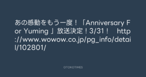 寺岡呼人 @yohito_teraoka – 9:39・2013年3月19日 2013 3/19 寺岡呼人 2013-03-19 あの感動をもう一度!「Anniversary For Yuming 」放送決定!3/31! http://www.wowow.co.jp/pg_info/detail/102801/ Source:https://x.com/yohito_teraoka/status/31381187788... text X Post 寺岡呼人 寺岡呼人 この記事が気に入ったら フォローしてね! Follow @OtokoTimes1988 よかったらシェアしてね! URLをコピーしました! 寺岡呼人 @yohito_teraoka - 1:02・2013年3月19日 青山英樹 @aoyama_hideki - 16:26・2013年3月19日 関連記事 Artist 寺岡呼人 1968.02.07