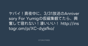 寺岡呼人 @yohito_teraoka – 2:08・2013年3月20日 2013 3/20 寺岡呼人 2013-03-20 ヤバイ!真夜中に、3/31放送のAnniversary For Yumigの仮編集観てたら、興奮して寝れない!凄いいい! http://instagr.am/p/XC-dyjsfko/ Source:https://x.com/yohito_teraoka/status/31406088494... text X Post 寺岡呼人 寺岡呼人 この記事が気に入ったら フォローしてね! Follow @OtokoTimes1988 よかったらシェアしてね! URLをコピーしました! 寺岡 呼人 @yohitoteraoka - 01:53・2013年3月20日(IG post) 寺岡 呼人 @yohitoteraoka - 03:12・2013年3月20日(IG post) 関連記事 Artist 寺岡呼人 1968.02.07