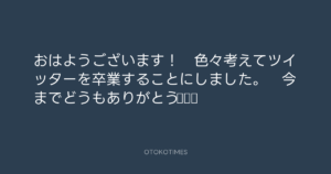寺岡呼人 @yohito_teraoka – 7:22・2013年4月1日 2013 4/01 寺岡呼人 2013-04-01 おはようございます! 色々考えてツイッターを卒業することにしました。 今までどうもありがとう☆☆☆ Source:https://x.com/yohito_teraoka/status/31848848580... text X Post 寺岡呼人 寺岡呼人 この記事が気に入ったら フォローしてね! Follow @OtokoTimes1988 よかったらシェアしてね! URLをコピーしました! 青山英樹 @aoyama_hideki - 21:18・2013年3月31日 寺岡呼人 @yohito_teraoka - 8:46・2013年4月2日 関連記事 Artist 寺岡呼人 1968.02.07