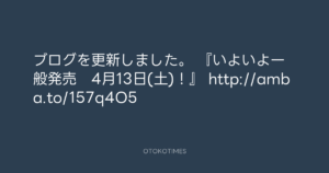 ブログを更新しました。 『いよいよ一般発売 4月13日(土)!』 http://amba.to/157q4O5