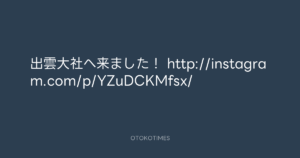 寺岡呼人 @yohito_teraoka – 18:24・2013年4月22日 2013 4/22 寺岡呼人 2013-04-22 出雲大社へ来ました! http://instagram.com/p/YZuDCKMfsx/ Source:https://x.com/yohito_teraoka/status/32626511700... text X Post 寺岡呼人 寺岡呼人 この記事が気に入ったら フォローしてね! Follow @OtokoTimes1988 よかったらシェアしてね! URLをコピーしました! 寺岡 呼人 @yohitoteraoka - 18:23・2013年4月22日(IG post) 寺岡 呼人 @yohitoteraoka - 18:35・2013年4月22日(IG post) 関連記事 Artist 寺岡呼人 1968.02.07