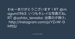 寺岡呼人 @yohito_teraoka – 19:08・2013年4月22日 2013 4/22 寺岡呼人 2013-04-22 わぁーありがとうございます!RT @magumi1963: いつもキレイな写真だね。RT @yohito_teraoka: 出雲の夕焼け。 http://Instagram.com/p/YZvW-DMftS/ Source:https://x.com/yohito_teraoka/status/32627630576... text X Post 寺岡呼人 寺岡呼人 この記事が気に入ったら フォローしてね! Follow @OtokoTimes1988 よかったらシェアしてね! URLをコピーしました! 寺岡呼人 @yohito_teraoka - 18:35・2013年4月22日 寺岡 呼人 @yohitoteraoka - 09:30・2013年4月23日(IG post) 関連記事 Artist 寺岡呼人 1968.02.07