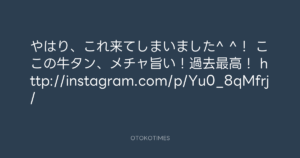 寺岡呼人 @yohito_teraoka – 23:09・2013年4月30日 2013 4/30 寺岡呼人 2013-04-30 やはり、これ来てしまいました^ ^! ここの牛タン、メチャ旨い!過去最高! http://instagram.com/p/Yu0_8qMfrj/ Source:https://x.com/yohito_teraoka/status/32923617540... text X Post 寺岡呼人 寺岡呼人 この記事が気に入ったら フォローしてね! Follow @OtokoTimes1988 よかったらシェアしてね! URLをコピーしました! 寺岡 呼人 @yohitoteraoka - 23:08・2013年4月30日(IG post) 寺岡 呼人 @yohitoteraoka - 09:42・2013年5月1日(IG post) 関連記事 Artist 寺岡呼人 1968.02.07