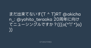 まだ出来てないす(T ^ T)RT @akichan_: @yohito_teraoka 20周年に向けてニューシングルですか?(((o(*゚▽゚*)o)))