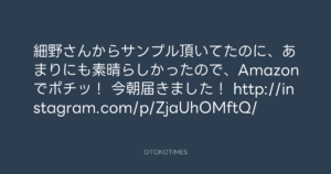 寺岡呼人 @yohito_teraoka – 9:16・2013年5月21日 2013 5/21 寺岡呼人 2013-05-21 細野さんからサンプル頂いてたのに、あまりにも素晴らしかったので、Amazonでポチッ! 今朝届きました! http://instagram.com/p/ZjaUhOMftQ/ Source:https://x.com/yohito_teraoka/status/33663655934... text X Post 寺岡呼人 寺岡呼人 この記事が気に入ったら フォローしてね! Follow @OtokoTimes1988 よかったらシェアしてね! URLをコピーしました! 寺岡 呼人 @yohitoteraoka - 09:15・2013年5月21日(IG post) 寺岡 呼人 @yohitoteraoka - 09:58・2013年5月21日(IG post) 関連記事 Artist 寺岡呼人 1968.02.07