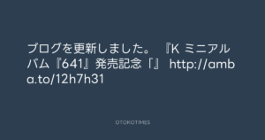ブログを更新しました。 『K ミニアルバム『641』発売記念「』 http://amba.to/12h7h31