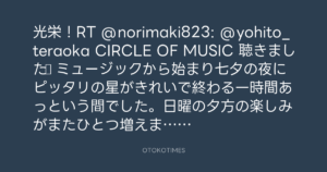 光栄!RT @norimaki823: @yohito_teraoka CIRCLE OF MUSIC 聴きました♪