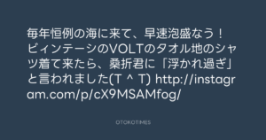 ビィンテーシのVOLTのタオル地のシャツ着て来たら、桑折君に「浮かれ過ぎ」と言われました(T ^ T) http://instagram.com/p/cX9MSAMfog/