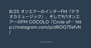 寺岡呼人 @yohito_teraoka – 17:51・2013年8月21日 2013 8/21 寺岡呼人 2013-08-21 8/25 オンエアーのインターFM「テラオカミュージック」、そして9/1オンエアーのFM COCOLO「Circle of… http://instagram.com/p/dROQ75sfvN/ Source:https://x.com/yohito_teraoka/status/37010588008... text X Post 寺岡呼人 寺岡呼人 この記事が気に入ったら フォローしてね! Follow @OtokoTimes1988 よかったらシェアしてね! URLをコピーしました! 寺岡 呼人 @yohitoteraoka - 17:49・2013年8月21日(IG post) 青山英樹 @aoyama_hideki - 20:34・2013年8月21日 関連記事 Artist 寺岡呼人 1968.02.07