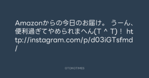 寺岡呼人 @yohito_teraoka – 14:04・2013年9月4日 2013 9/04 寺岡呼人 2013-09-04 Amazonからの今日のお届け。 うーん、便利過ぎてやめられまへん(T ^ T)! http://instagram.com/p/d03iGTsfmd/ Source:https://x.com/yohito_teraoka/status/37512214699... text X Post 寺岡呼人 寺岡呼人 この記事が気に入ったら フォローしてね! Follow @OtokoTimes1988 よかったらシェアしてね! URLをコピーしました! 寺岡 呼人 @yohitoteraoka - 14:03・2013年9月4日(IG post) 青山英樹 @aoyama_hideki - 14:37・2013年9月5日 関連記事 Artist 寺岡呼人 1968.02.07