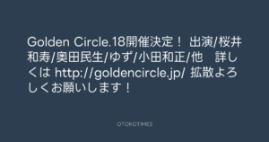 寺岡呼人 @yohito_teraoka – 6:03・2013年9月11日 2013 9/11 寺岡呼人 2013-09-11 Golden Circle.18開催決定! 出演/桜井和寿/奥田民生/ゆず/小田和正/他 詳しくは http://goldencircle.jp/ 拡散よろしくお願いします! Source:https://x.com/yohito_teraoka/status/37753781664... text X Post 寺岡呼人 寺岡呼人 この記事が気に入ったら フォローしてね! Follow @OtokoTimes1988 よかったらシェアしてね! URLをコピーしました! 寺岡呼人 @yohito_teraoka - 0:51・2013年9月10日 寺岡呼人 @yohito_teraoka - 6:10・2013年9月11日 関連記事 Artist 寺岡呼人 1968.02.07