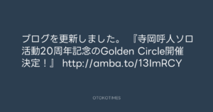 寺岡呼人 @yohito_teraoka – 6:10・2013年9月11日 2013 9/11 寺岡呼人 2013-09-11 ブログを更新しました。 『寺岡呼人ソロ活動20周年記念のGolden Circle開催決定!』 http://amba.to/13ImRCY Source:https://x.com/yohito_teraoka/status/37753969090... text X Post 寺岡呼人 寺岡呼人 この記事が気に入ったら フォローしてね! Follow @OtokoTimes1988 よかったらシェアしてね! URLをコピーしました! 寺岡呼人 @yohito_teraoka - 6:03・2013年9月11日 寺岡呼人 @yohito_teraoka - 8:48・2013年9月11日 関連記事 Artist 寺岡呼人 1968.02.07