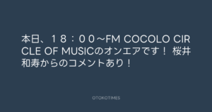 本日、18:00~FM COCOLO CIRCLE OF MUSICのオンエアです!