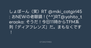 寺岡呼人 @yohito_teraoka – 10:59・2013年11月6日 2013 11/06 寺岡呼人 2013-11-06 しょぼーん(笑)RT @miki_catgirl45: おNEWの老眼鏡!(^^)RT@yohito_teraoka: そうだ!今日11時からTFM系列「ディアフレンズ」だ。まもなくです! Source:https://x.com/yohito_teraoka/status/39790594094... text X Post 寺岡呼人 寺岡呼人 この記事が気に入ったら フォローしてね! Follow @OtokoTimes1988 よかったらシェアしてね! URLをコピーしました! 寺岡呼人 @yohito_teraoka - 10:21・2013年11月6日 寺岡呼人 @yohito_teraoka - 12:04・2013年11月6日 関連記事 Artist 寺岡呼人 1968.02.07