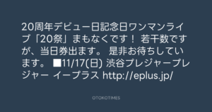 20周年デビュー日記念日ワンマンライブ「20祭」まもなくです!