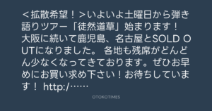 <拡散希望!>いよいよ土曜日から弾き語りツアー「徒然道草」始まります! 大阪に続いて鹿児島、名古屋とSOLD OUTになりました。 各地も残席がどんどん少なくなってきております。ぜひお早めにお買い求め下さい!お待ちしています! http://www.yohito.com/home/index.php?e=56