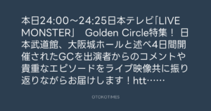 本日24:00~24:25日本テレビ「LIVE MONSTER」 Golden Circle特集!
