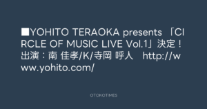 「CIRCLE OF MUSIC LIVE Vol.1」決定!出演:南 佳孝/K/寺岡 呼人 http://www.yohito.com/
