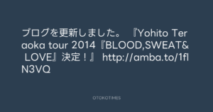 ブログを更新しました。 『Yohito Teraoka tour 2014『BLOOD,SWEAT& LOVE』決定!』 http://amba.to/1flN3VQ