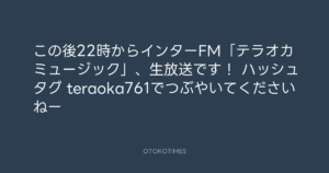 寺岡呼人 @yohito_teraoka – 21:22・2014年4月29日 2014 4/29 寺岡呼人 2014-04-29 この後22時からインターFM「テラオカミュージック」、生放送です! ハッシュタグ teraoka761でつぶやいてくださいねー Source:https://x.com/yohito_teraoka/status/46111825383... text X Post 寺岡呼人 寺岡呼人 この記事が気に入ったら フォローしてね! Follow @OtokoTimes1988 よかったらシェアしてね! URLをコピーしました! 青山英樹 @aoyama_hideki - 10:53・2014年4月29日 寺岡呼人 @yohito_teraoka - 21:28・2014年4月29日 関連記事 Artist 寺岡呼人 1968.02.07