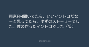 寺岡呼人 @yohito_teraoka – 13:08・2014年7月14日 2014 7/14 寺岡呼人 2014-07-14 東京FM聞いてたら、いいイントロだなーと思ってたら、ゆずのストーリーでした。僕の作ったイントロでした(笑) Source:https://x.com/yohito_teraoka/status/48853550408... text X Post 寺岡呼人 寺岡呼人 この記事が気に入ったら フォローしてね! Follow @OtokoTimes1988 よかったらシェアしてね! URLをコピーしました! Koyo Maeda @koyomaeda - 12:31・2014年7月12日 寺岡呼人 @yohito_teraoka - 19:25・2014年7月15日 関連記事 Artist 寺岡呼人 1968.02.07