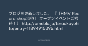 寺岡呼人 @yohito_teraoka – 8:52・2014年7月16日 2014 7/16 寺岡呼人 2014-07-16 ブログを更新しました。 『「HMV Record shop渋谷」 オープンイベントご招待!』 http://ameblo.jp/teraokayohito/entry-11894915396.html Source:https://x.com/yohito_teraoka/status/48919575152... text X Post 寺岡呼人 寺岡呼人 この記事が気に入ったら フォローしてね! Follow @OtokoTimes1988 よかったらシェアしてね! URLをコピーしました! 寺岡呼人 @yohito_teraoka - 19:25・2014年7月15日 寺岡呼人 @yohito_teraoka - 11:19・2014年7月17日 関連記事 Artist 寺岡呼人 1968.02.07