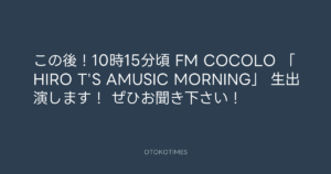 寺岡呼人 @yohito_teraoka – 10:07・2014年9月4日 2014 9/04 寺岡呼人 2014-09-04 この後!10時15分頃 FM COCOLO 「HIRO T’S AMUSIC MORNING」 生出演します! ぜひお聞き下さい! Source:https://x.com/yohito_teraoka/status/50733398503... text X Post 寺岡呼人 寺岡呼人 この記事が気に入ったら フォローしてね! Follow @OtokoTimes1988 よかったらシェアしてね! URLをコピーしました! 寺岡呼人 @yohito_teraoka - 10:13・2014年9月2日 Koyo Maeda @koyomaeda - 22:52・2014年9月4日 関連記事 Artist 寺岡呼人 1968.02.07