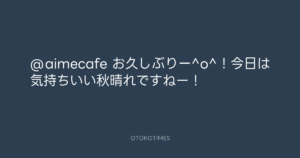 @aimecafe お久しぶりー^o^!今日は気持ちいい秋晴れですねー!