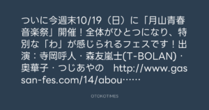 ついに今週末10/19(日)に「月山青春音楽祭」開催!全体がひとつになり、特別な「わ」が感じられるフェスです!出演:寺岡呼人・森友嵐士(T-BOLAN)・奥華子・つじあやの http://www.gassan-fes.com/14/about_gassan/
