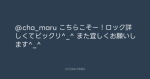 @cha_maru こちらこそー!ロック詳しくてビックリ^_^ また宜しくお願いします^_^