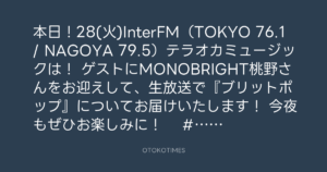 ゲストにMONOBRIGHT桃野さんをお迎えして、生放送で『ブリットポップ』についてお届けいたします!