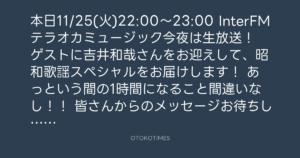 InterFMテラオカミュージック今夜は生放送!
