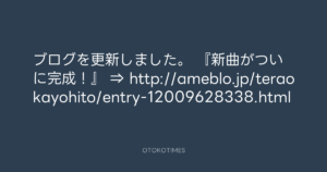 寺岡呼人 @yohito_teraoka – 9:56・2015年4月3日 2015 4/03 寺岡呼人 2015-04-03 ブログを更新しました。 『新曲がついに完成!』 ⇒ http://ameblo.jp/teraokayohito/entry-12009628338.html Source:https://x.com/yohito_teraoka/status/58379508451... text X Post 寺岡呼人 寺岡呼人 この記事が気に入ったら フォローしてね! Follow @OtokoTimes1988 よかったらシェアしてね! URLをコピーしました! 寺岡 呼人 @yohitoteraoka - 18:26・2015年4月1日(IG post) 寺岡 呼人 @yohitoteraoka - 10:05・2015年4月3日(IG post) 関連記事 Artist 寺岡呼人 1968.02.07