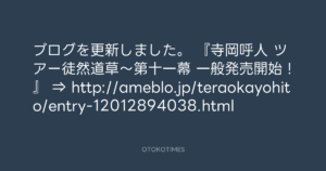 ブログを更新しました。 『寺岡呼人 ツアー徒然道草〜第十一幕 一般発売開始!』