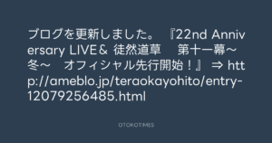 ブログを更新しました。 『22nd Anniversary LIVE& 徒然道草  第十一幕〜冬〜 オフィシャル先行開始!』